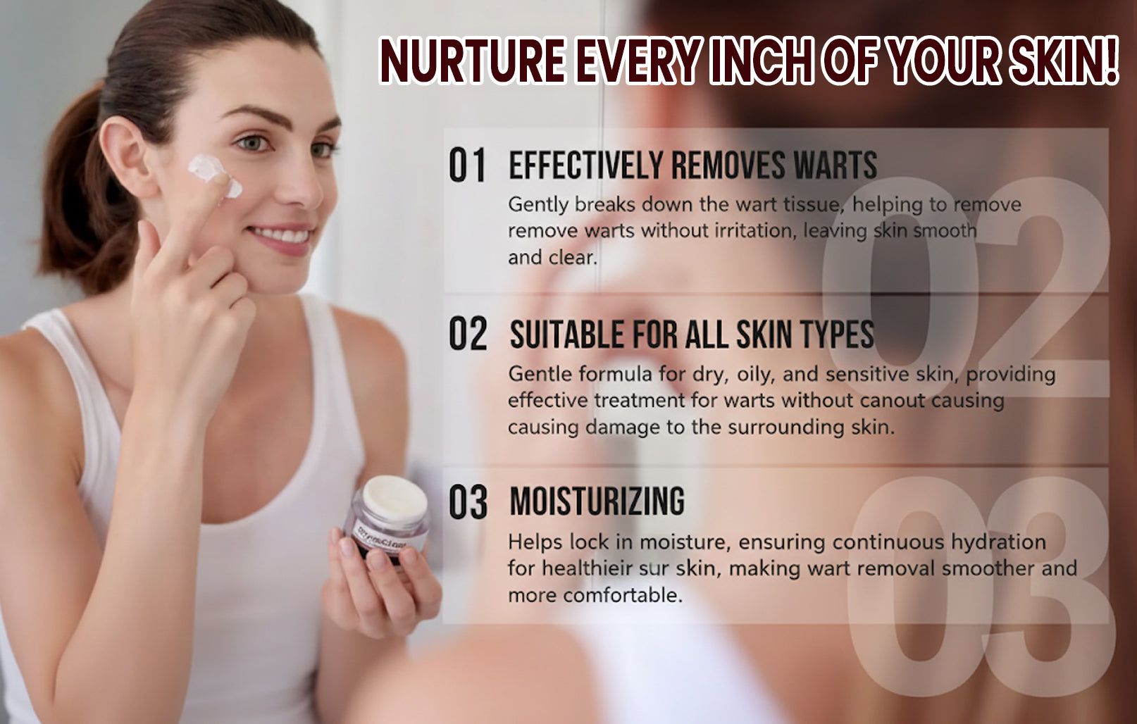 These plant-based ingredients work synergistically to remove warts without harming the skin—suitable for all skin types, including sensitive areas—leaving your skin smooth, clear, and healthy.